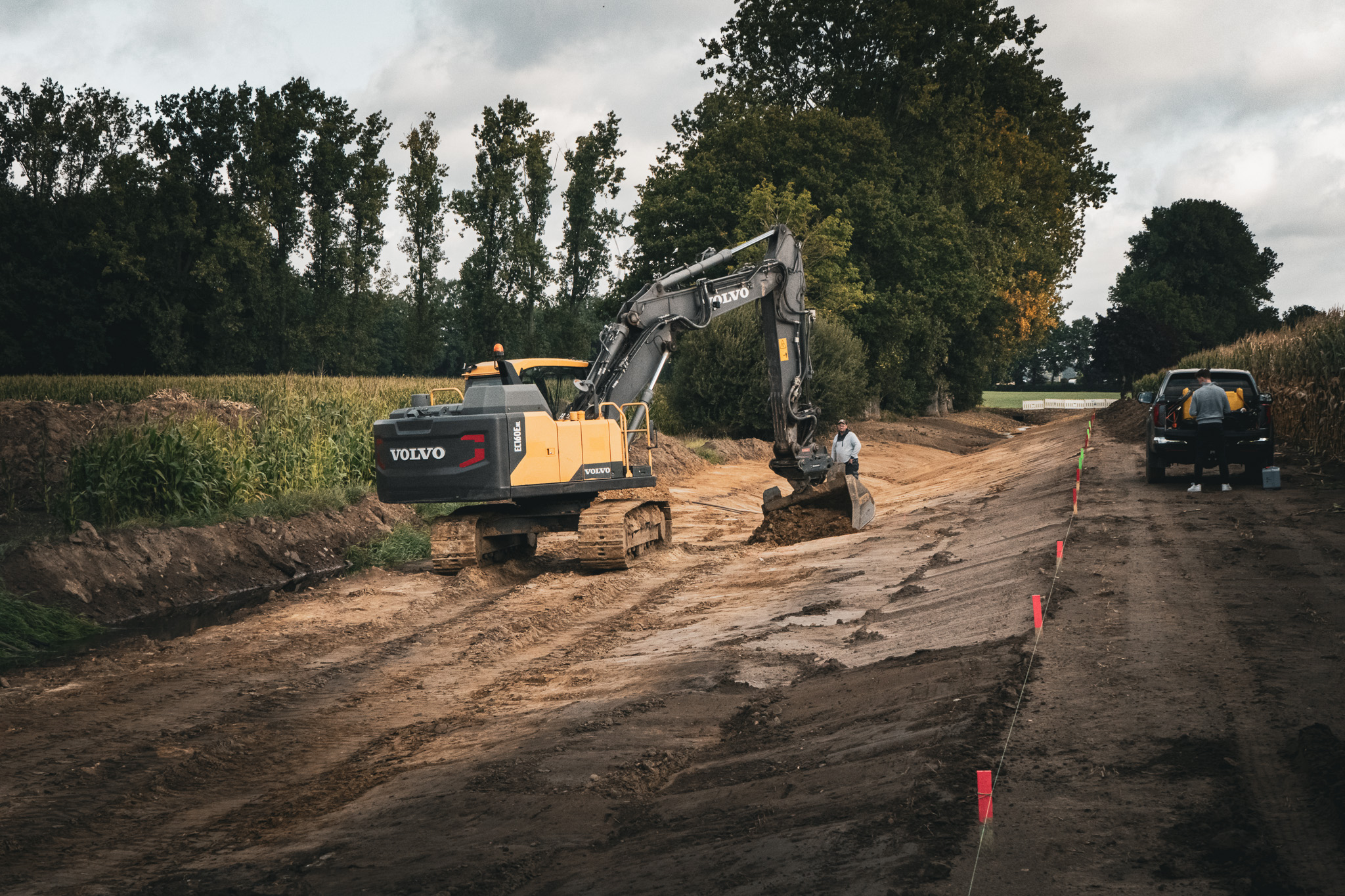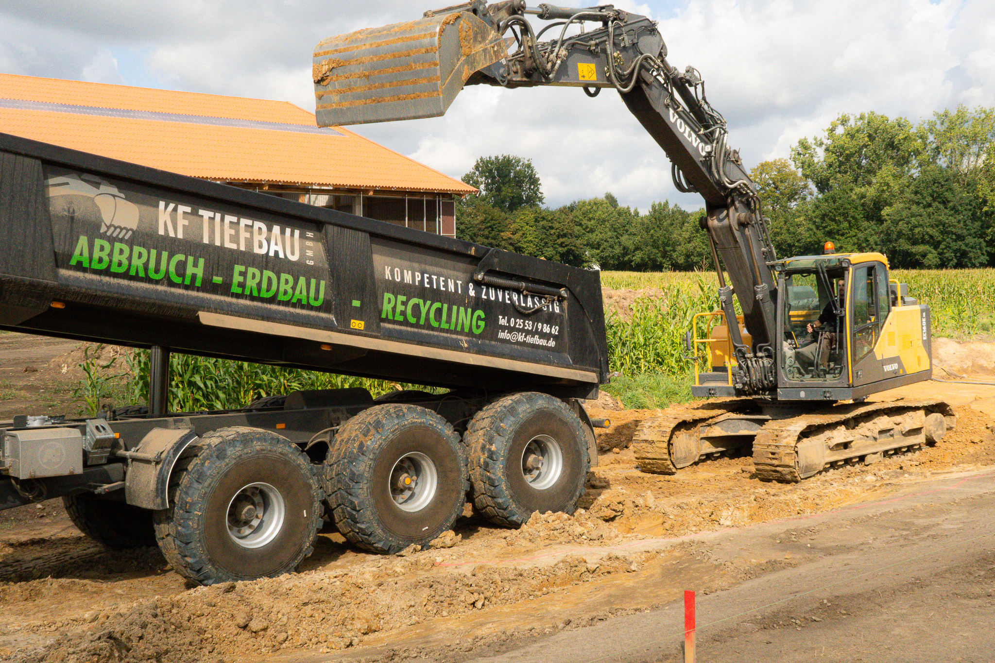 In Mettingen befand sich ein offener Entwässerungsgraben zur Ableitung von Regen- und Oberflächenwasser. Die Lage inmitten landwirtschaftlich genutzter Flächen machte eine sichere und kontrollierte Lösung notwendig, um zukünftige Nutzungskonzepte umzusetzen.